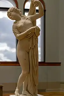 Ulla von Höpken was the model of the naked Venus sculpture by Johan Tobias Sergel, Venus aux belles fesses (1779). King Gustav III wished to have a statue of Venus Kallipygos opposite his statue of Apollo in his salon, and "as a compliment to our ladies in waiting", Ulla von Höpken was chosen as the model of the statue's face, to "celebrate her fifteen years in the service of Venus".[2] In the 18th-century, it was quite controversial for a woman of her social status to stand as the model of a nude statue, and count Claes Julius Ekeblad remarked: "Sergel has, of modesty or because uncle Axel has asked him to, not given this portrait all the likeness he could have, but nevertheless she is recognizable. I admit that I have never, despite all the disregard here shown toward gossip, imagined anything of the sort, to have a femme de qualité exposed to the entire world in this way."[2] The statue was later placed in the National Museum of Fine Arts.