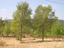 'Arno' has reputedly performed extremely well in trials in northern Italy, even where grown on poor clay soils.[2] The clone was introduced to the UK by Butterfly Conservation in 2007,[1] and to The Netherlands by Noordplant, but is not known elsewhere in Europe, and has not been introduced to North America or Australasia. 'Arno' is no longer in commerce in Italy.