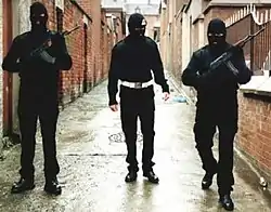 In 1974, hardliners staged a coup and took over the Brigade Staff.[51] This resulted in a sharp increase in sectarian killings and internecine feuding, both with the UDA and within the UVF itself.[51] Some of the new Brigade Staff members bore nicknames such as "Big Dog" and "Smudger".[52] Beginning in 1975, recruitment to the UVF, which until then had been solely by invitation, was now left to the discretion of local units.[53]