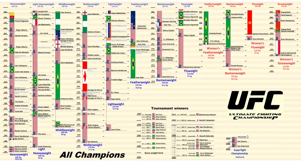 UFC 5 also introduced the first singles match, a rematch from the inaugural UFC featuring three-time champion Royce Gracie and Ken Shamrock, called "The Superfight".[38] "The Superfight" began as a non-tournament match that would determine the first reigning UFC Champion for tournament winners to face;[39] it later evolved into a match that could feature either title matches or non-title matches. The "Superfight" would eventually completely phase out tournament matches.