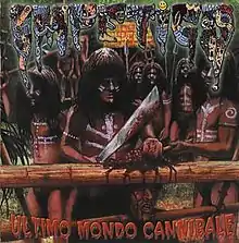 Ultimo Mondo Cannibale is the debut album by American band Impetigo. It was released in 1990 and was a major influence in the grindcore and goregrind scene.[2] It is one of the first albums to use sound segments from horror films as intros for their songs (the title itself refers to the same named Italian cannibal movie by Ruggero Deodato). Another of the first bands to use this technique is Spanish grindcore band Machetazo.