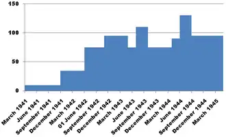 Decryption of Enigma traffic built up gradually during 1940, with the first two prototype bombes being delivered in March and August. The traffic was almost entirely limited to Luftwaffe messages. By the peak of the Battle of the Mediterranean in 1941, however, Bletchley Park was deciphering daily 2,000 Italian Hagelin messages. By the second half of 1941 30,000 Enigma messages a month were being deciphered, rising to 90,000 a month of Enigma and Fish decrypts combined later in the war.[27]