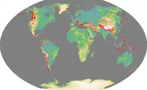 An ultra-prominent peak, or Ultra for short, is a mountain summit with a topographic prominence of 1,500 metres (4,900 ft) or more; it is also called a P1500.[1] The prominence of a peak is the minimum height of climb to the summit on any route from a higher peak, or from sea level if there is no higher peak. There are approximately 1,524 such peaks on Earth.[2] Some well-known peaks, such as the Matterhorn and Eiger, are not Ultras because they are connected to higher mountains by high cols and therefore do not achieve enough topographic prominence.