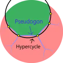 If the bisectors are diverging parallel then a pseudogon (distinctly different from an apeirogon) can be inscribed in hypercycles (all vertices are the same distance of a line, the axis, also the midpoint of the side segments are all equidistant to the same axis.)