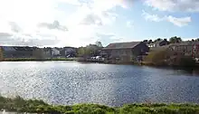 The opening of the Furness Railway in 1846 seriously damaged the profitability of the canal, which was eventually bought by the railway company. The rise of Barrow-in-Furness as a deep-water port also saw a decline in trade. After 1878, no ships were built in Ulverston. The canal was used commercially until the First World War and was officially abandoned at the end of the Second World War. It has since been maintained by Ulverston town council, who maintain a walkway on its eastern side. Its western side is still industrialised, with a large GlaxoSmithKline factory (built on the site of the former iron works and paper mills). Glaxo bought the canal from the town council in 1974 and used it as an emergency water reserve.[8] In 2009, GlaxoSmithKline reviewed their operations at Ulverston and later sold the canal to Ulverston Canal Company, a company set up to manage the asset. This is a subsidiary of NPL Estates Ltd, which specialises in land management. A Trust has also been set up by GlaxoSmithKline, to ensure that funds are available for the canal's management, maintenance, and preservation.[11]