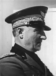 After a period at the disposal of the Ministry of War, he was promoted to brigadier general and given command of the Military District of Pistoia and then of the 8th Infantry Brigade, stationed in Parma, where he remained from 1929 to 1933, after which he was Inspector of Infantry until 1935.[21][22][23] In January 1935, after promotion to major general, he assumed command of the 2nd CC.NN. Division "28 Ottobre", participating at its command in the Second Italo-Ethiopian War, until September 1936.[24][25][26][27][28] From September 1936 to October 1937 he then commanded the 9th Infantry Division "Pasubio", after which he was attached to the Florence Army Corps (1937-1939) and to the Ministry of War (March-September 1939) and then at the disposal of the Chief of Staff of the Army.[29][30] After promotion to lieutenant general in March 1939 he assumed command of the XXII Army Corps, stationed in Libya, until 9 June 1940, when he was replaced by Enrico Pitassi Mannella and retired after having reached the age limits, just before Italy's entry into the Second World War.[31][32][33][34]