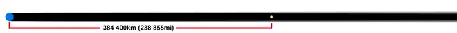 The distance from the Moon to the apex of its umbra is roughly equal to that between the Moon and Earth: 384,402 km (238,856 mi). Since Earth's diameter is 3.7 times the Moon's, its umbra extends correspondingly farther: roughly 1.4 million km (870,000 mi).[1]
