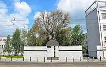 • At the back of the Complex of High Schools and Economics No. 1 is a fragment of the ghetto wall which was the border of Umschlagplatz.[11][12] In 2014, it was dismantled and reconstructed after the bricks were cleaned.[13][14]