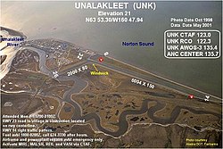 Unalakleet Airport (IATA: UNK, ICAO: PAUN, FAA LID: UNK) is a state-owned public-use airport located one nautical mile (2 km) north of the central business district of Unalakleet, a city in the Nome Census Area of the U.S. state of Alaska.[1]