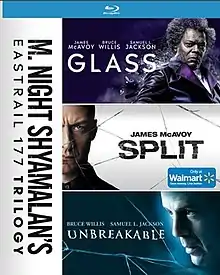 The Unbreakable trilogy,[1] also known as the Eastrail 177 Trilogy, is an American superhero thriller and psychological horror film series.[2] The films were written, produced, and directed by M. Night Shyamalan. The trilogy consists of Unbreakable (2000), Split (2016), and Glass (2019).