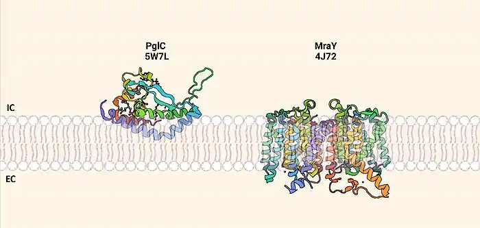 - Ray LC, Das D, Entova S, Lukose V, Lynch AJ, Imperiali B, Allen KN (June 2018). "Membrane association of monotopic phosphoglycosyl transferase underpins function". Nature Chemical Biology. 14 (6): 538–541. doi:10.1038/s41589-018-0054-z. PMC 6202225. PMID 29769739.