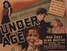 Under Age is a 1941 American crime film directed by Edward Dmytryk and starring Nan Grey, Alan Baxter, Mary Anderson, and Tom Neal.[1]
