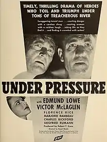 Under Pressure is a 1935 American drama film directed by Raoul Walsh, written by Borden Chase, Lester Cole and Noel Pierce, and starring Edmund Lowe, Victor McLaglen, Florence Rice, Marjorie Rambeau, Charles Bickford and Sig Ruman. It was released on February 1, 1935, by Fox Film Corporation.[2][3][4]