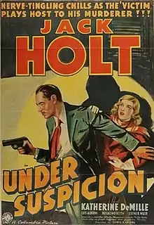Under Suspicion is a 1937 American mystery film directed by Lewis D. Collins and starring Jack Holt, Katherine DeMille and Luis Alberni.[1]