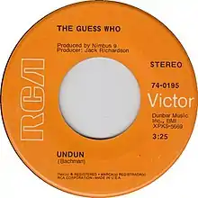 "Undun" is a song recorded by Canadian rock group The Guess Who. It spent two weeks at #21 on the Canadian Singles Chart in November–December 1969[3] and reached #15 on the U.S. adult contemporary chart and #22 on the Billboard Hot 100.[4]