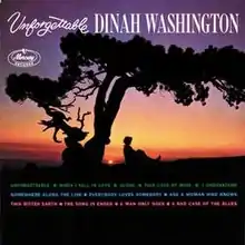 Unforgettable is the twelfth studio album LP record by blues, R&B and jazz singer Dinah Washington, released on the Mercury Records label, and reissued as a compilation album in 1991.[3] The record shows the singer mostly in a pop star role instead of her traditional jazz & blues style. Allmusic reviews the compilation album as saying: "This CD (which has the original LP program of 12 songs joined by six others) finds Washington singing brief (mostly under three-minute) versions of standards in hopes of gaining another hit.".[4] The single "Unforgettable", released in 1959, peaked at #10 on the Billboard 200 chart in 1961,[5] and Dinah's recording of the song was inducted into the Grammy Hall of Fame in 2001.[6]