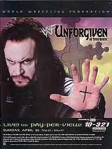 On the road to WrestleMania, Vince McMahon revealed in an interview by Kevin Kelly that the thought of Stone Cold Steve Austin winning the WWF Championship would be a public relations nightmare. Following the event, McMahon had Austin incarcerated after being assaulted in the ring. He later brought out a changed Austin, formed in his own corporate image with a suit. This turned out to be a ruse though, with Austin quickly stripping off into his normal attire and stunning McMahon. On the April 13th edition of Raw is War, Austin offered McMahon the choice of fighting him in the ring or being attacked backstage; McMahon took the offer of the match but once in the ring called on the boast that Austin had made, that he could defeat McMahon with one hand tied behind his back. Before the match could get underway though, Mick Foley returned in his Dude Love persona and attacked McMahon and then gave the mandible claw to Austin.[4] The week before the event, McMahon commentated the final match, Dude Love versus Steve Blackman, and promised not only to be at ringside during Unforgiven but a catastrophic event would occur. Austin commented on this saying Vince McMahon has only sat at ringside one other time and that was at Survivor Series when someone else got screwed out of the title.[7] The match ended in controversy as well, when the timekeeper suddenly rang the bell in the middle of a submission hold, declaring Dude Love the winner, much to the fury of Blackman.