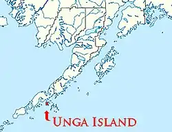 Unga Island (Uĝnaasaqax̂[1] in Aleut) is the largest of the Shumagin Islands off the Alaska Peninsula in southwestern Alaska, United States. The island has a land area of 170.73 sq mi (442.188 km2), making it the 36th largest island in the United States. As of the 2000 census, it had a permanent population of one.[2]