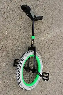 - Multi-wheeled unicycle, a unicycle with more than one wheel, stacked on top of each other so that only one wheel touches the ground (nicknamed stacks). The wheels are linked together by chains or direct contact with each other.[7] These unicycles can also be called giraffes.