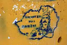 Graffiti with shapes of Greater Romania near Briceni, Moldova. The portrait is of Stephen the Great, a national hero in both countries.