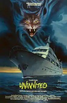 Uninvited is a 1987[2][3] American science-fiction horror film written, produced and directed by Greydon Clark and starring George Kennedy, Alex Cord, Clu Gulager, Toni Hudson and Eric Larson.[4] The film primarily takes place aboard a luxury yacht owned by a criminal multimillionaire and bound for the Cayman Islands, whose passengers and crew are terrorized by a mutant cat.