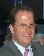 The relationship between the early Dutch settlers and Native Americans was marked by frequent armed conflict over land claims. In 1658 by New Netherland colony Director-General Peter Stuyvesant re-purchased the territory.[40][41] The boundaries of the purchase are described in the deed preserved in the New York State Archives, as well as the medium of exchange: "80 fathoms of wampum, 20 fathoms of cloth, 12 brass kettles, 6 guns, one double brass kettle, 2 blankets, and one half barrel of strong beer."[42] In 1660, he ordered the building of a fortified village at Bergen to protect the area.[43] It was the first permanent European settlement in New Jersey, located in what is now the Journal Square area of Jersey City near Academy Street.[41][44] In 1664, the British captured New Netherland from the Dutch, at which point the boundaries of Bergen Township encompassed what is now known as Hudson County. North of this was the unpopulated Bergen Woods, which would later be claimed by settlers, after whom a number of Union City streets today are named,[41] including Sipp Street,[45][46][47] Brown Street,[46][48] Golden Lane,[48] Tournade Street and Kerrigan Avenue,[49] which is named after J. Kerrigan, the owner of Kerrigan Farm, who donated the land for Saint Michael's Monastery.[49][50]