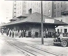 The previous stations were last used on November 30, 1930, with passenger traffic being moved to a temporary station at the foot of South Hudson Street[1] the next day. The Santa Fe Depot remained in use, and the Missouri-Kansas-Texas Railroad also continued using its own station.