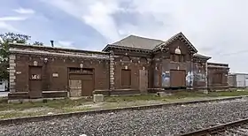 Union Station is a historic railway station located at Salisbury, Wicomico County, Maryland, United States. It was constructed in 1913–14, near the junction where the New York, Philadelphia & Norfolk Railroad intersected with the Baltimore, Chesapeake and Atlantic Railroad (later, the Baltimore & Eastern Railroad) in the center of Salisbury. Both railroads became part of the Pennsylvania Railroad (PRR). It has a 1+1⁄2-story, Flemish bond brick main block covered by a medium-pitched hip roof sheathed in slate, with single-story wings. From the 1920s to the 1950s, the PRR ran several passenger trains a day, including the Del-Mar-Va Express, through the station, north–south from Philadelphia to Cape Charles, Virginia.[2]