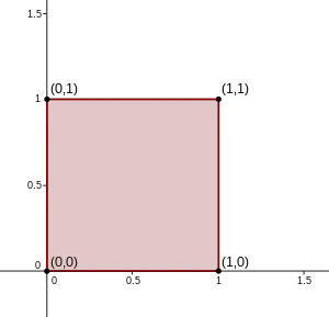 In a Cartesian coordinate system with coordinates (x, y), a unit square is defined as a square consisting of the points where both x and y lie in a closed unit interval from 0 to 1.