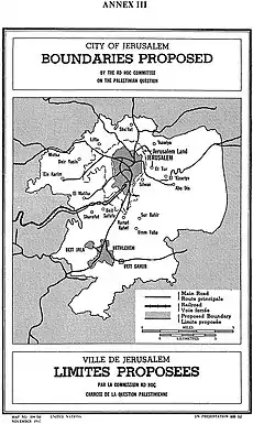 ![]() The resolution attached a copy of the map from the 1947 United Nations Partition Plan for Palestine | |