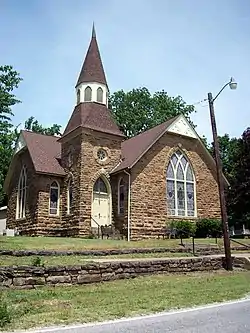 The United Presbyterian Church of Canehill is a historic church on Main Street in Canehill, Arkansas. Built in 1891, it is the only surviving church building in the small community. It is a brick structure with a cruciform plan with steeply-pitched gable roofs, large Gothic-arched stained glass windows, and a tower with an octagonal belfry topped by a shingled steeple. Canehill was originally settled in 1828 by a Presbyterian group, and eventually supported three separate Presbyterian congregations over the course of the 19th century. These congregations were reunited into this building in 1905.[2]