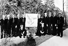 United States Navy Armed Guard units were established during World War II and headquartered in New Orleans.[1] The purpose of the guard was to man the deck guns of merchant ships to provide a nominal defense against attack. This was to counter the constant danger presented by enemy submarines, surface raiders, fighter aircraft and bombers.[1] There was a shortage of escort vessels to provide the merchant vessels with adequate protection. The NAG had three training centers, at Norfolk, Virginia; San Diego, California; and Gulfport, Mississippi.[1] At the end of the war, there were 144,857 men serving in the Navy Armed Guard on 6,200 ships.[2]