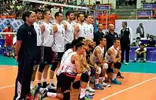 As the birthplace of volleyball, the United States founded the first association to regulate the sport. The United States Volleyball Association was formed in 1927, and was the founding member of FIVB in 1947.[1] However, by the time of volleyball's international growth in the 1940s, the US was no longer a major power. They competed in the inaugural volleyball Olympic tournament in 1964.[2] The US returned to the elite in the 1980s, winning the FIVB World Championship in 1986 in Paris, as well as four golds at the Pan American Games and eight at the NORCECA Championships. Of the nine times that the US have competed at the World Cup, they have finished fourth five times, most recently in 2007. They won the event in 1985, and last time out in 2011 they finished in sixth place, eight points away from the medal positions. The team was a bronze medal at the World Championships in 1994. Four years prior, in Italy, they finished sixth. Of the 14 times the United States have qualified for this competition, they have finished in the top 10 on eight occasions. The US at the World Cup in 1985 and the World Championship in 1986. The US team won its first Olympic gold medal in 20 years when they defeated Brazil 3-1 to take gold at Beijing 2008. The team failed to defend their title in 2012, losing 3-0 to Italy in the quarterfinals for an equal-fifth finish. The US won the 2015 World Cup title, where they got the first Rio 2016 Olympic qualification ticket. In September 2015 U.S. national team took part in 2015 World Cup. American players won 10 of 11 matches (the same result as Poland and Italy) and lost only to Poland (1-3). On September 23, 2015 they played their last game at the World Cup and defeated Argentina (3–1). The US won the World Cup on a points tie-breaker and qualified for the 2016 Summer Olympics.[3][4] It was their second victory in World Cup tournament (previous in 1985).[5] In the 2018 FIVB Volleyball Men's Nations League, the inaugural edition replacing the World League, the U.S. national team defeated the reigning Olympic champions and 9-time World League winners Brazil in straight sets for the bronze medal.[6]