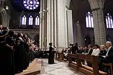 Since 1937, the ceremony has incorporated one or more prayers.[39][40] Since 1933 an associated prayer service either public or private attended by the president-elect has often taken place on the morning of the day.[41] At times a major public or broadcast prayer service takes place after the main ceremony most recently on the next day.[42]