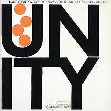 Unity is an album by jazz organist Larry Young, released on the Blue Note label in August, 1966. The album features trumpeter Woody Shaw, tenor saxophonist Joe Henderson and drummer Elvin Jones. While not free jazz, the album features experimentation that was innovative for the time. Young chose the title because, "although everybody on the date was very much an individualist, they were all in the same frame of mood. It was evident from the start that everything was fitting together."[5] The album was Young's second for Blue Note, and is widely considered a "post-bop" classic.