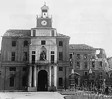 The Cattolica was partially destroyed by bombing on 15–16 August 1943, including several classrooms, an administration building, the office building, a cloister by Bramante, an ancient staircase, the hall of honour, and some colleges. The reconstruction work began immediately, moved by the words of Agostino Gemelli "rise again more beautiful and bigger than before".[10]