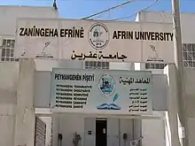 Afrin University (Kurdish: Zanîngeha Efrînê) was an unrecognized university in the city of Afrin in northern Syria, when Afrin was a part of the Autonomous Administration of North and East Syria (AANES). It was the second university to open in the AANES[1] (after the Mesopotamian Social Sciences Academy which opened ten months before)[2] and the first university to open in the Afrin District.