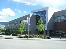 Although the campus itself is located in a semi-rural area, it has a direct interchange with Highway 97 and Downtown Kelowna can be reached with 15 minutes of driving.[15] It is also close to Kelowna International Airport.