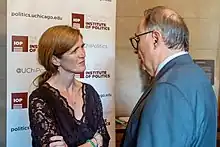 The Institute of Politics (IOP) is an extracurricular nonpartisan political institute associated with the College of the University of Chicago and the Harris School of Public Policy designed to inspire students to pursue careers in politics and public service.[1] Following the University of Chicago's longstanding tradition of wide-ranging political debate and freedom of expression,[2] the IOP seeks to convene a diverse array of speakers, students, and leaders from a variety of backgrounds for the edification of its student body.