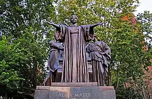 Alma Mater, a prominent statue on campus created by alumnus Lorado Taft, was unveiled on June 11, 1929. It was established from donations by the Alumni Fund and the classes of 1923–1929.[35]