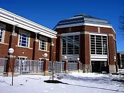 In 1998, the Hallene Gateway Plaza was dedicated. The Plaza features the original sandstone portal of University Hall, which was originally the fourth building on campus.[30] In recent years, state support has declined from 4.5% of the state's tax appropriations in 1980 to 2.28% in 2011, a nearly 50% decline.[38] As a result, the university's budget has shifted away from relying on state support with nearly 84% of the budget coming from other sources in 2012.[39]