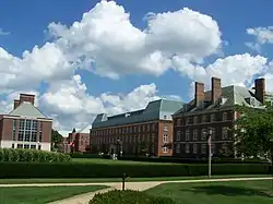 The campus is known for its landscape and architecture, as well as distinctive landmarks.[46] It was identified as one of 50 college or university "works of art" by T.A. Gaines in his book The Campus as a Work of Art.[47] The campus also has a number of buildings and sites on the U.S. National Register of Historic Places including Harker Hall, Astronomical Observatory, Louise Freer Hall, the Main Library, the Experimental Dairy Farm Historic District, and the Morrow Plots. The University of Illinois Willard Airport is one of the few airports owned by an educational institution.[48]
