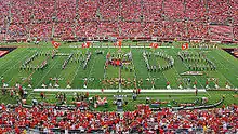 For over 70 years the Cardinal Marching Band has proudly represented the University of Louisville as the most visible ensemble of the School of Music, performing live for over half a million spectators each year.[5] Creating vibrant game day traditions for Cardinal fans is at the core of the CMB, which performs at all home football games, select away games, and all bowl games.