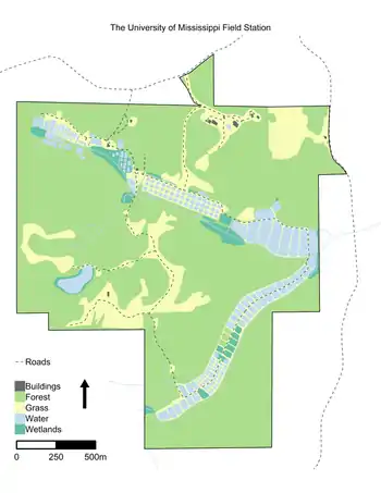 The University of Mississippi Field Station (UMFS) is a 787-acre (318 ha) off-campus research and education complex located in Lafayette County, Mississippi about 8 miles (13 km) northeast of downtown Oxford and operated by the University of Mississippi.[1]