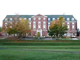 Architect G. Ernest Fairweather designed several of the campus buildings, including the Old Civil Engineering Building (1900) and the Gymnasium (1906).[23] In addition, several of the stained glass windows in the Convocation Hall were created by Robert McCausland Limited. UNBF's War Memorial Hall (usually referred to as Memorial Hall), originally built as a science building in 1924, honours the 35 UNB Alumni who died in World War I. UNBF's Brigadier Milton F. Gregg, V.C., Centre for the Study of War and Society (usually referred to as The Gregg Centre) was created in 2006.[24] The Richard J. Currie Center, a five-storey 139,000-square-foot building, was constructed in 2013.[3]