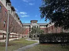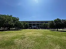 UNO's classes were originally housed in the remaining buildings following the closure of NAS New Orleans at that site. As a nod to campus' time as a Naval base, the oldest lecture buildings completed in 1960, the Liberal Arts Building and the Science Building, are both numbered and laid-out like a ship with Liberal Arts featuring exterior balconies for access to the classrooms as opposed to interior hallways, and both Liberal Arts and Science featuring two central courtyards in each building.[21] UNO's newer chemical-sciences annex is designed like a steam boat and many of the newer lecture buildings on campus have similar shapes to the original science and liberal arts buildings without the interior courtyards due to limited space on the main campus.