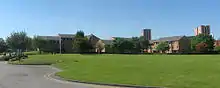 Castle Irwell Student Village was the largest area of accommodation, housing up to 1,600 students, and is on the site of the old Manchester Racecourse.[35] Castle Irwell was a popular choice for first years, due to the cheap rent, however Castle Irwell is no longer in use and has been superseded by the on-campus Peel Park Quarter. In 2016 the main building on the Castle Irwell site, known as 'the pav', was burned down in an arson attack.[36] Shortly after, demolition of the burnt and other derelict buildings on site commenced and completely cleared by early 2017.