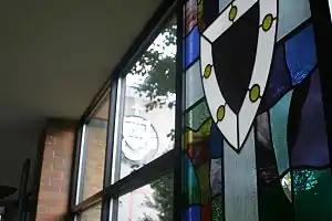 Completed in 1992, the Harry and Jeanette Weinberg Memorial Library was designed to replace the Alumni Memorial Library, which proved unable to serve adequately the growing student population, to house the vast library collections, and lacked the necessary wiring for modernizing the library with new technological advances.[4] More than double the size of the Alumni Memorial Library, the Weinberg Memorial Library has five floors which can seat anywhere from 700 to 1000 users at cubicles, tables, group study rooms, and lounges.[5] It currently houses 473,830 volumes, over 15,500 electronic journals, 562,368 microform pieces and 1,709 periodical subscriptions, both current and archived. It is also home to the University Archives and Special Collections, which features many rare books, as well as university records. On the third floor, there are a number of administrative offices as well as two large classrooms which are used for classes based on learning about the library and the services it can provide. The fourth floor has a large reading room featuring a stained glass window.[6] The fifth floor is the Scranton Heritage Room which is a large open hall featuring thirty-nine panel paintings by Trevor Southey depict art, religion, and science in the Lackawanna Valley and in the world.[7]