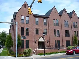 Leahy Hall is located on the former site of the Scranton chapter of the Young Women's Christian Association, on the southwest corner of Jefferson Avenue and Linden Street. Originally constructed in 1907 and purchased by the University of Scranton in 1976, the YWCA was transformed into Jefferson Hall, serving as an off-campus residence for university students until the building was converted into old Leahy Hall in 1984, used to house facilities for the university's Physical Therapy and Occupational Therapy departments.[50]