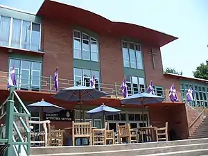 The McDade Center location was once the site of Crawford House, the 1898 Tudor Revival home of coal operator, baron, and Peoples Coal Company owner James L. Crawford.[77] In 1992, several years after Crawford's wife died, Lackawanna County purchased the estate to serve as the Juvenile Detention Center.[77] In 1989, after four years of negotiations, the University of Scranton acquired Crawford House.[78] Originally, the university planned to renovate and restore the property, where it would relocate the Admissions and Financial Aid offices as well as a combinations switchboard and a visitors area.[78] However, the university discovered that the interior damage was too severe and that it would not be economically feasible to renovate it.[79] The university's decision to demolish the Crawford House ignited fierce controversy because of strong opposition from local historical organizations, such as the Lackawanna Historical Society, the State Historic Preservation Office, and the Architectural Heritage Association who believed the house "represent[ed] the lifestyle of a coal baron of the late nineteenth century," and was therefore significant for Scranton, a city founded on coal.[79] In an attempt to compromise with those upset by the potential demolition of Crawford House, the university proposed that the building be relocated in order to preserve its historical aspects but this too proved too costly so Crawford House was demolished in 1991. Rather than using the site for administrative offices as originally planned, the university decided to build the Instructional Arts Facility which would be home to the English and Theater departments, as the need for performing arts space was identified back in 1983.[74] The Crawford House was subsequently delisted from the National Register in 1992.